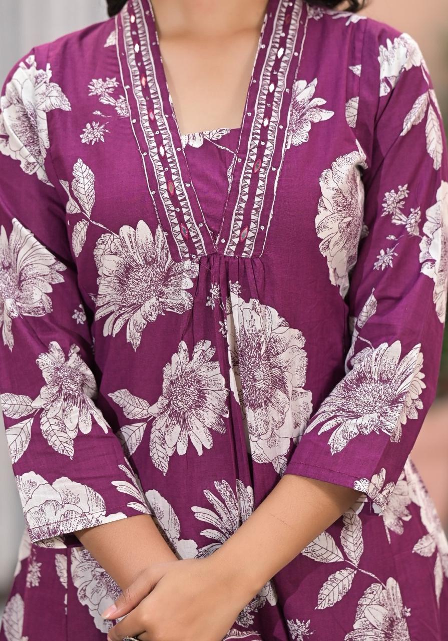 This beautifully crafted 3-piece set is made from premium Cotton fabric, comfort and style for all-day wear. The set includes a long floral printed kurta with a delicate embroidered neckline, paired with straight-fit pants and a lightweight printed dupatta. Perfect for casual outings, festive gatherings, or everyday elegance.